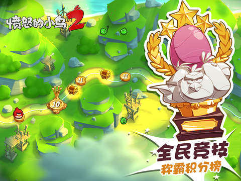 竞技场中,炫耀你的通关成绩,与全服玩家比赛虐猪,看天下弹鸟手,谁才是响当当的角色。每天都有新的锦标赛可打,并根据排名高低获得羽毛奖励,不仅可提升鸟儿等级,还可以为鸟儿们增加拖尾效果!